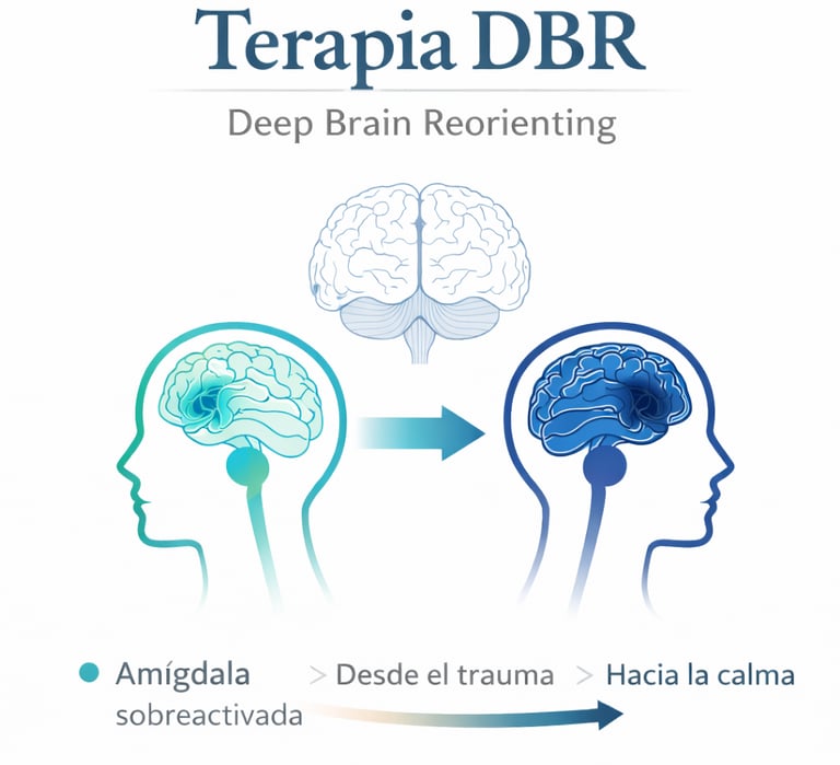 La Terapia DBR (Deep Brain Reorienting) o REORIENTACIÓN CEREBRAL PROFUNDA es un enfoque psicoterapéutico basado en neurociencia para el tratamiento del trauma psicológico, especialmente del trauma temprano, relacional y complejo. Se centra en los circuitos profundos del cerebro que se activan de manera automática ante experiencias de amenaza, shock o desorientación.